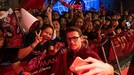 Tom juga mengambil telepon genggam milik penggemarnya dan lakukan swafoto bersama.