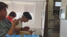 Donghae juga mengunggah momen ketika para personel Super Junior telah berada di dalam pesawat menuju Jakarta.